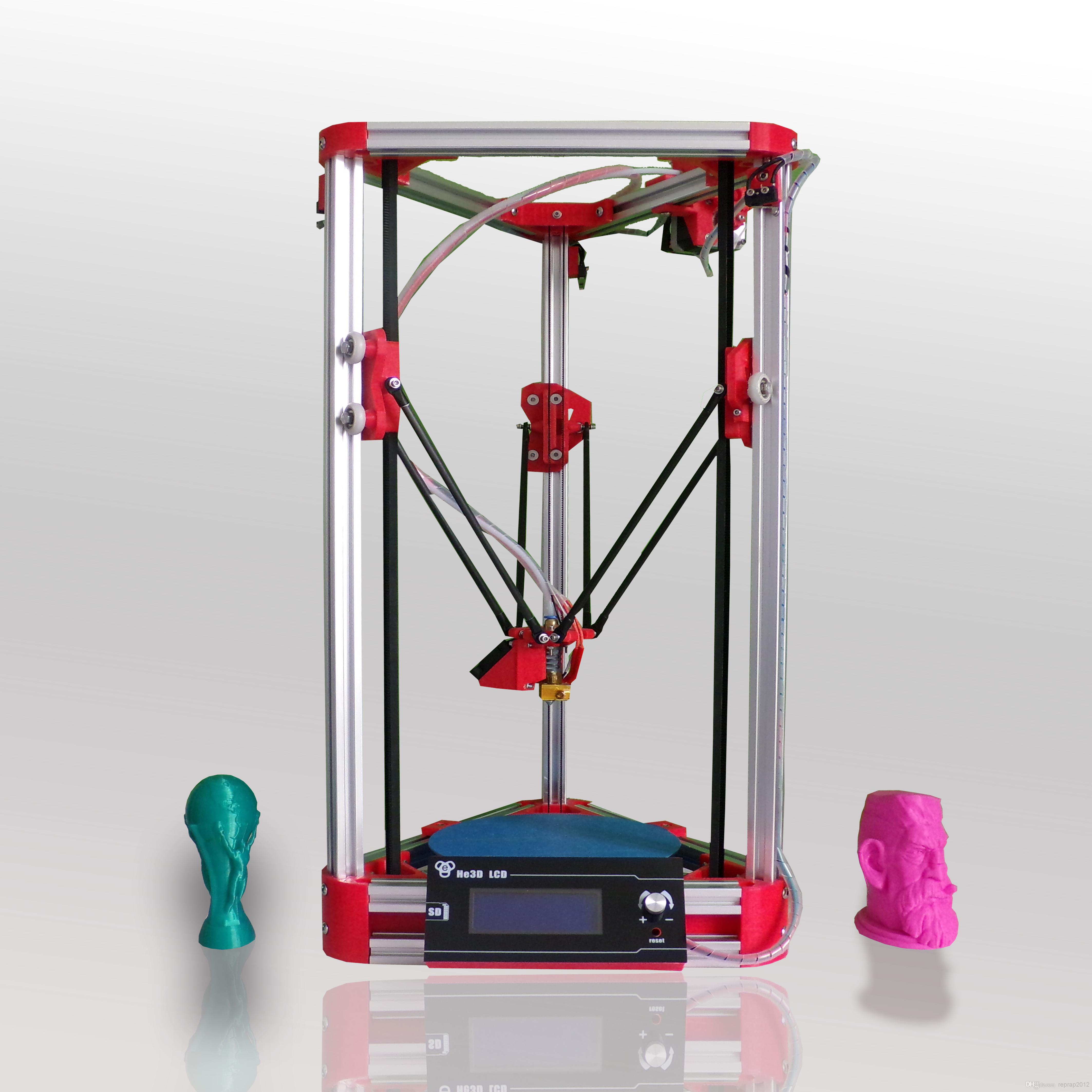 최근 자주 출시되고 있는 삼각형 기둥모양의 프린터가 델타 방식입니다. 델타방식 3D프린터의 특징은 압출기부분이 X, Y, Z축의 운동을 하고, 베드부분은 고정되어 있는 점입니다. 그래서 한 축으로 모든 3D 프린팅을 하기 때문에, FDM방식 중에서는 제일 빠르며, 베드가 고정되어 있어서 출력물 또한 안정적으로 출력이 가능합니다. 델타 방식의 단점은 크기에 비해 출력 사이즈가 작다는 단점이 있습니다.