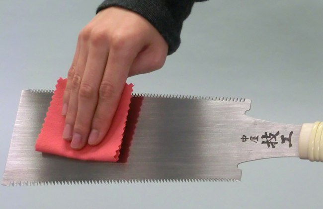 | 톱을 사용한 후에는 칼날에 묻어 있는 톱밥을 털어내고, 방청유나 기름으로 가볍게 닦아냅니다. 보관함이나 전용 칼집에 넣어 고온 다습한 곳을 피해서 보관합니다. |