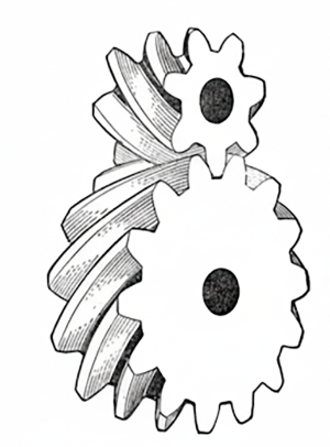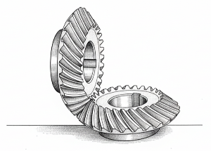 원뿔 형태의 기어로, 주로 서로 만나는 두 축 사이에서 동력을 전달할 때 사용됩니다. ⚙️