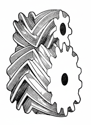 헤링본 기어는 헬리컬 기어의 단점을 보완한 고급 기어입니다. '더블 헬리컬 기어'라고도 불립니다.