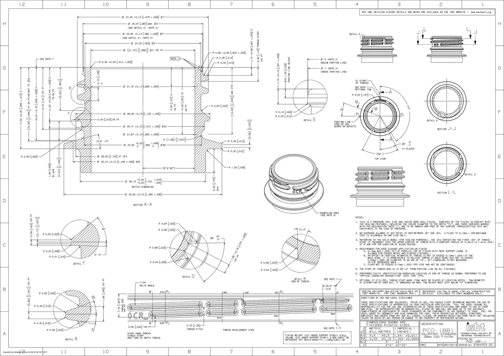 ISBT 실은 병 모양에 따라 병과 연결되는 지점이 다르며, 1810~1823, 1881의 범위에서 각각 약간씩 다른 실 모양을 가지고 있습니다. 많은 가압식 소다병이 이 실을 사용하는데, 이는 우수한 밀폐력을 제공하기 때문입니다.